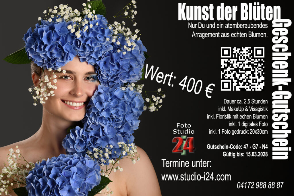 Individuelle Schönheit und künstlerische Inszenierung vereinen sich zu einem unvergesslichen Erlebnis. Unser Konzept „Kunst der Blüten“ lädt Dich dazu ein, in einem maßgeschneiderten Fotoshooting den Zauber Deiner Persönlichkeit einzufangen und in kunstvoll bearbeiteten Bildern zu erstrahlen. Hier erwarten Dich exklusives Styling, professionelle Visagistik und echte Blumenarrangements – alles in einem modernen Fotostudio-Setting.